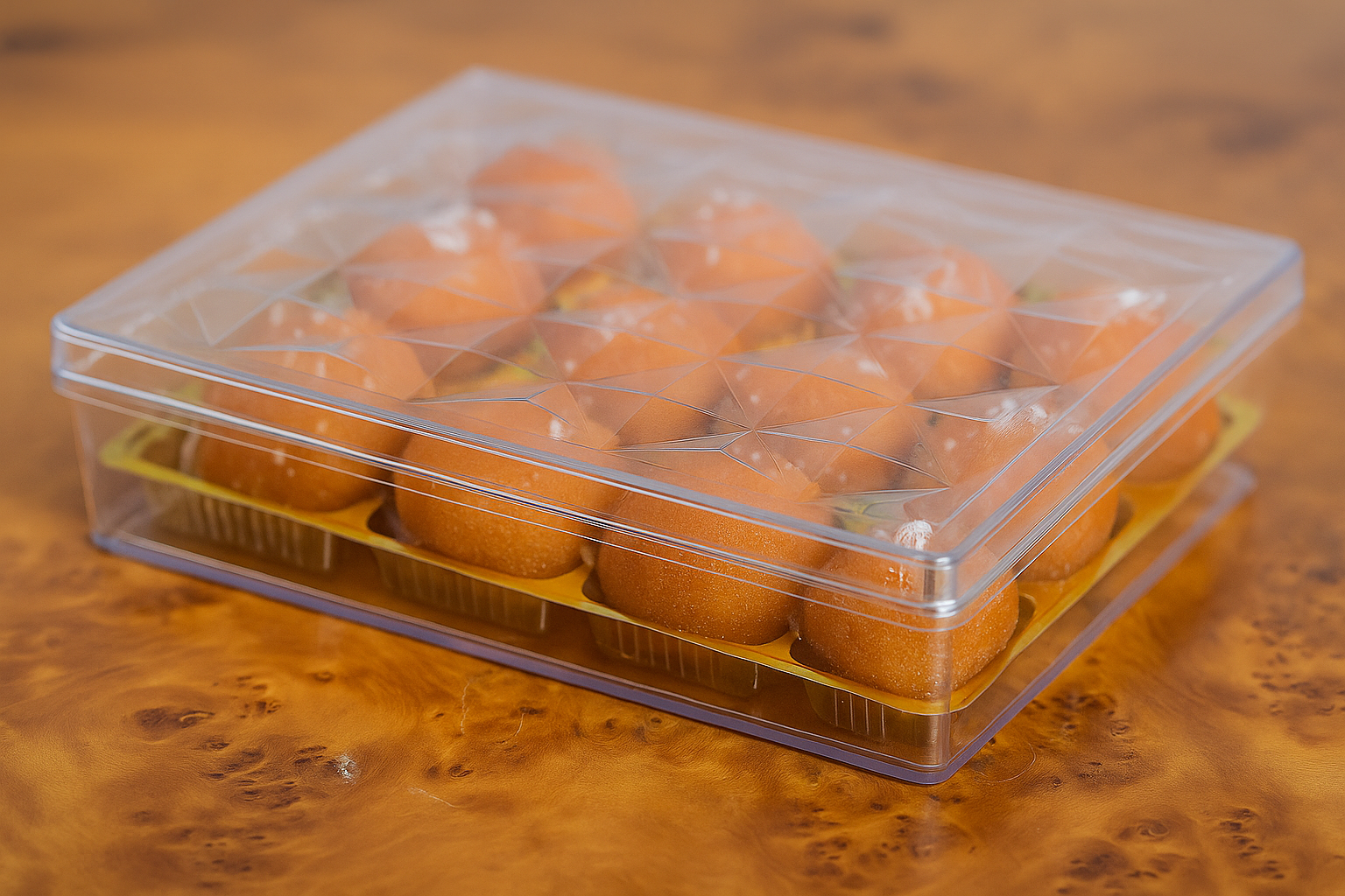 Sleek, sturdy, and stunning — this premium acrylic box is designed to showcase your sweets in the most elegant way possible. With 12 perfectly sized cavities, it’s ideal for gifting mithai, dry fruits, chocolate truffles, or baklava.