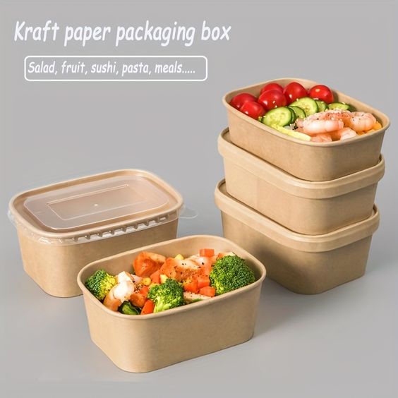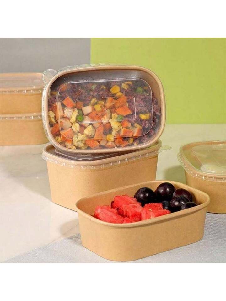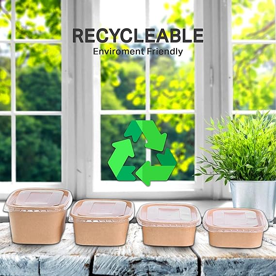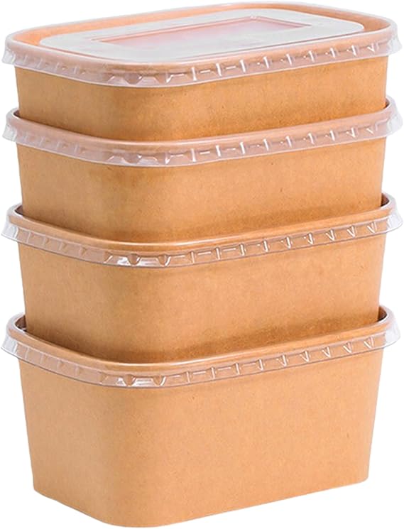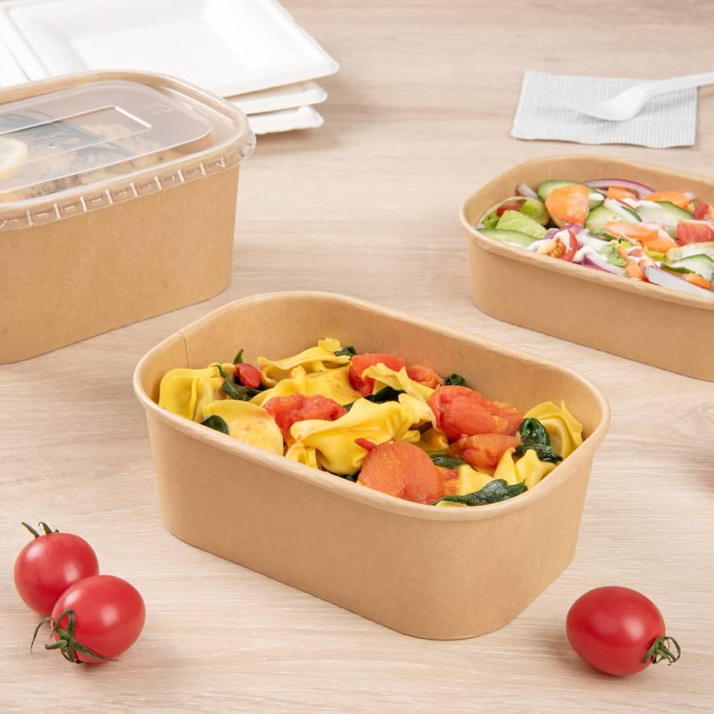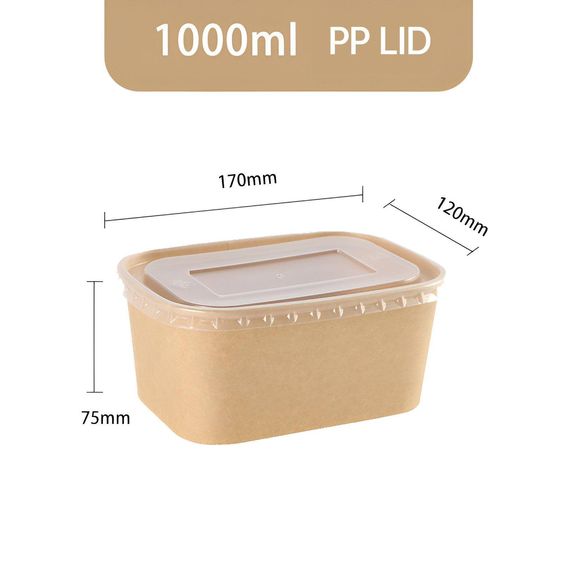 Introducing the ultimate meal prep solution - a set of reusable, stackable food storage containers that are both practical and eco-conscious. These Kraft brown takeaway paper bowls with lids are perfect for packing your homemade meals, salads, or snacks. The rectangular 650 ML, 750 ML, 1000MLcontainers are made from durable, heavy-duty paper, ensuring your food stays fresh and secure during transport. With a sleek and modern design, these bowls are not only functional but also visually appealing. The lids create an airtight seal, preventing spills and keeping your food's flavours and aromas intact. Whether you're packing a wholesome lunch for work or planning a picnic, these containers are the perfect choice. Stackable for easy storage and transport, they are also recyclable, making them an environmentally responsible option. Upgrade your meal prep game with these versatile and convenient paper bowls and lids.