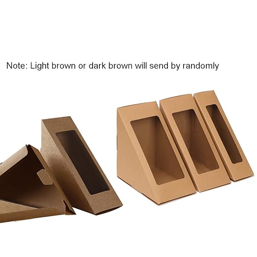 Hygiene Packaging Triangle Sandwich Boxes with Window Kraft Paper Sandwich Box Sandwich Wedge Box Sandwich Packaging Box Sandwich Take Out Containers Sandwich Takeaway Boxes, Sandwich Paper Boxes,Kraft Paper Sandwich Boxes with Window, Wedge Box Individual Charcuterie Sushi Container for Bakery,Cheesecake,Cake Slice Container,Restaurant Takeaway Service , 2.9 x 4.8 x 4.8 Inch.