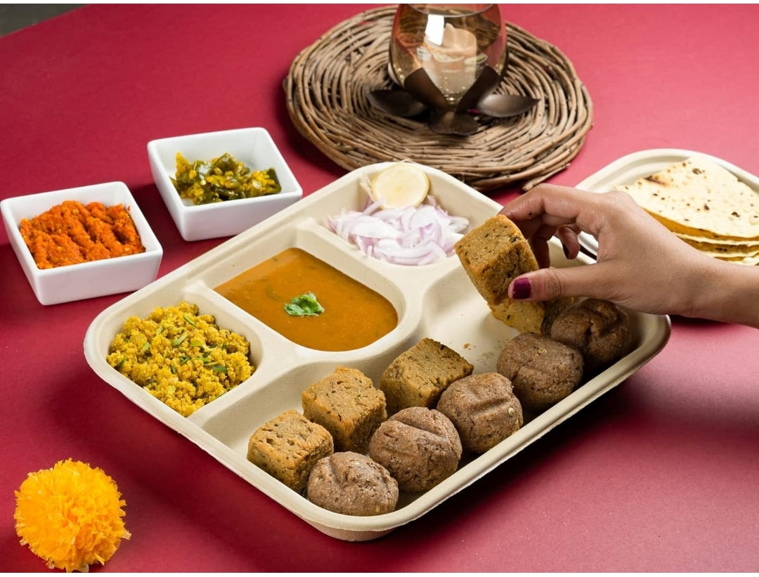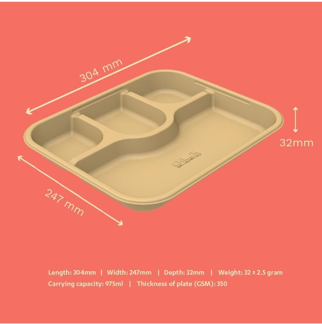 4 Compartment Plates, Bio-Degradable Sugarcane Bagasse Plates